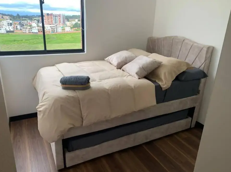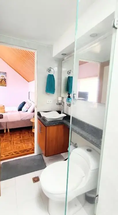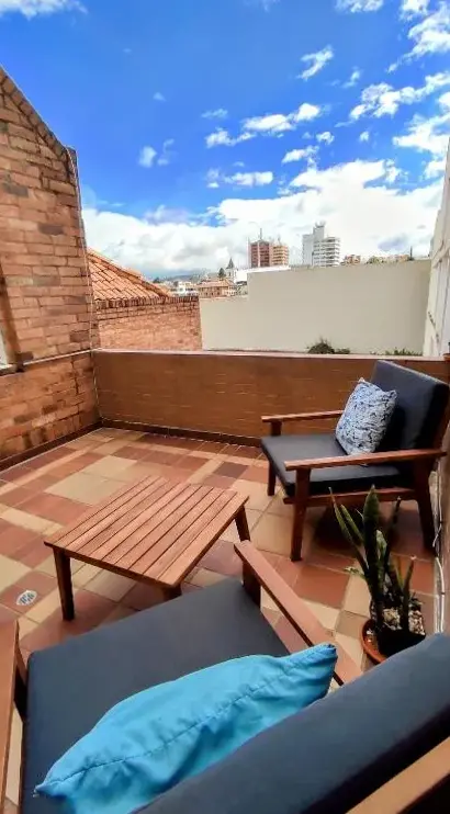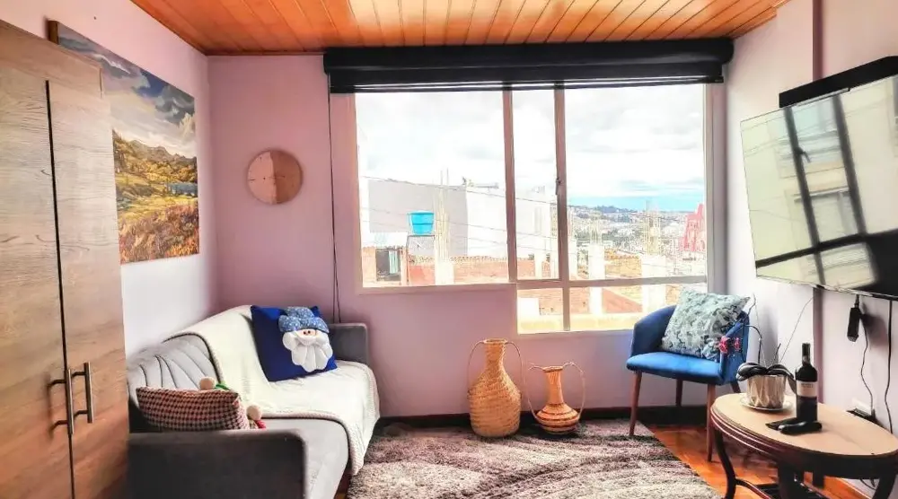 Weitere Informationen zu Alojamiento en Las QuintasDas GUAYACÁN Apartamento duplex im historischen Zentrum von Tunja bietet eine moderne Unterkunft mit zwei Terrassen sowie einem gemütlichen Familienzimmer für bis zu vier Personen. Im Erdgeschoss befindet sich ein kleiner Barbereich, ideal für entspannte Abende oder gesellige Treffen.